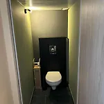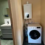 Cozy Home With Garden & Terrace beschikt over een badkamer met een apart toilet, een douche en een wasmachine. Een haardroger en handdoeken zijn inbegrepen om uw comfort te verhogen.